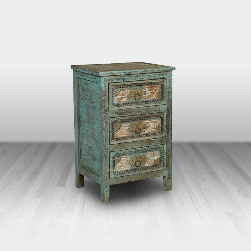 Introducing The Ellensburg Chest, a stunning 3-drawer masterpiece that brings the rustic allure of the Old Southwest right into your bedroom. Its aged turquoise finish exudes timeless elegance, complemented by rustic circular hardware for a touch of authenticity. Customizable to fit your unique style, The Ellensburg Chest is not just furniture; it’s a statement piece that adds character to any space. Whether you’re furnishing a cozy mountain retreat, adding flair to your city office, or enhancing the charm of a vacation home, this chest is the perfect choice. Its customizable features ensure that it seamlessly blends into your chosen setting while adding a touch of Southwest-inspired beauty.