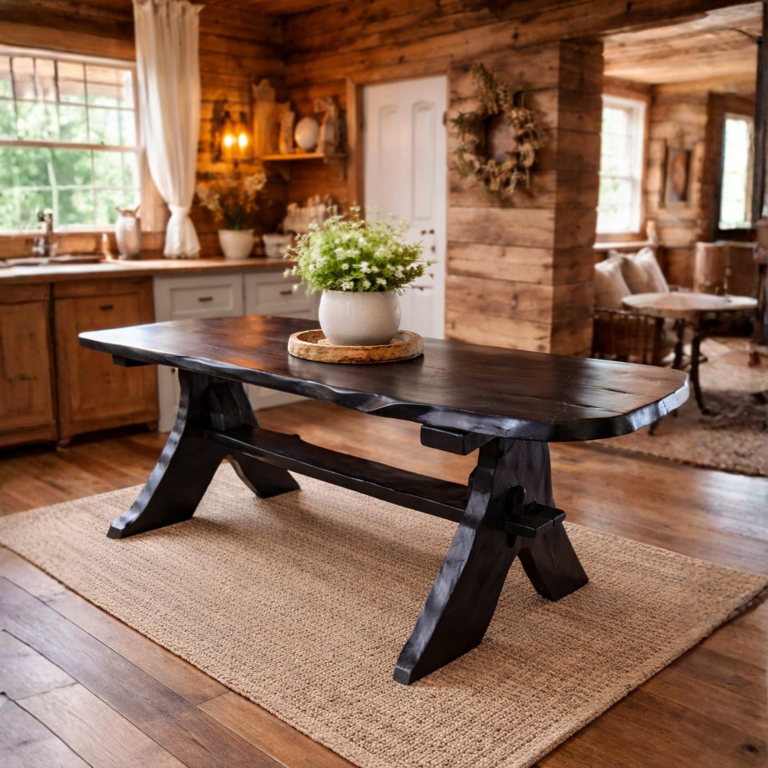 The Sonora Live Edge Table is a bold celebration of natural beauty and handcrafted design. Crafted from solid wood, the tabletop features an organic live edge that highlights the unique grain, character, and movement of the material. Finished in a rich black stain, the Sonora makes a striking statement while remaining warm and inviting.