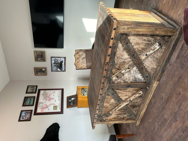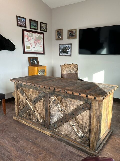 The desk’s standout feature is its impeccable leather top, a touch of luxury that speaks volumes about your refined taste. Complemented by cowhide panels, each desk embodies the essence of Texas craftsmanship, where attention to detail is paramount.